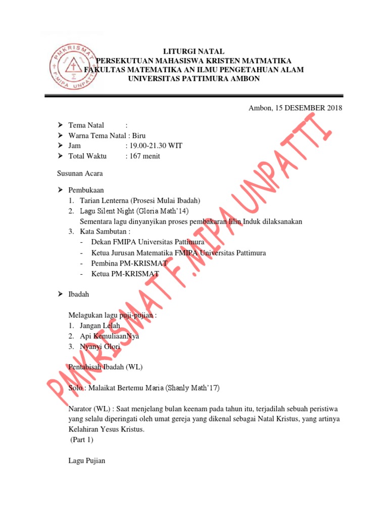 Download as docx, pdf, txt or read online from scribd. Contoh susunan acara natal pemuda. Savesave rundown acara perayaan natal sekolah minggu for later. 2,202 likes · 40 talking about this. Savesave rundown acara perayaan natal sekolah minggu for later.