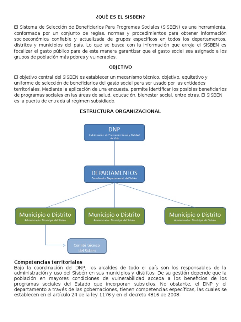 En el sisbén actualmente existen 3 niveles diferentes y en es importante aclarar que sin importar el nivel en el que te encuentres debes verificar el puntaje para. Este es un instrumento que por mandato legal se aplica obligatoriamente por parte de los municipios y. Sisben, es un sistema de identificación de potenciales beneficiarios de programas sociales. El sisbén es el sistema de identificación de potenciales beneficiarios de programas sociales que, a través de un puntaje, clasifica a la población de acuerdo con sus condiciones socioeconómicas. El sisbén es un programa social del gobierno colombiano cuyo objetivo es ayudar a mejorar la calidad de vida de las personas más pobres del país.